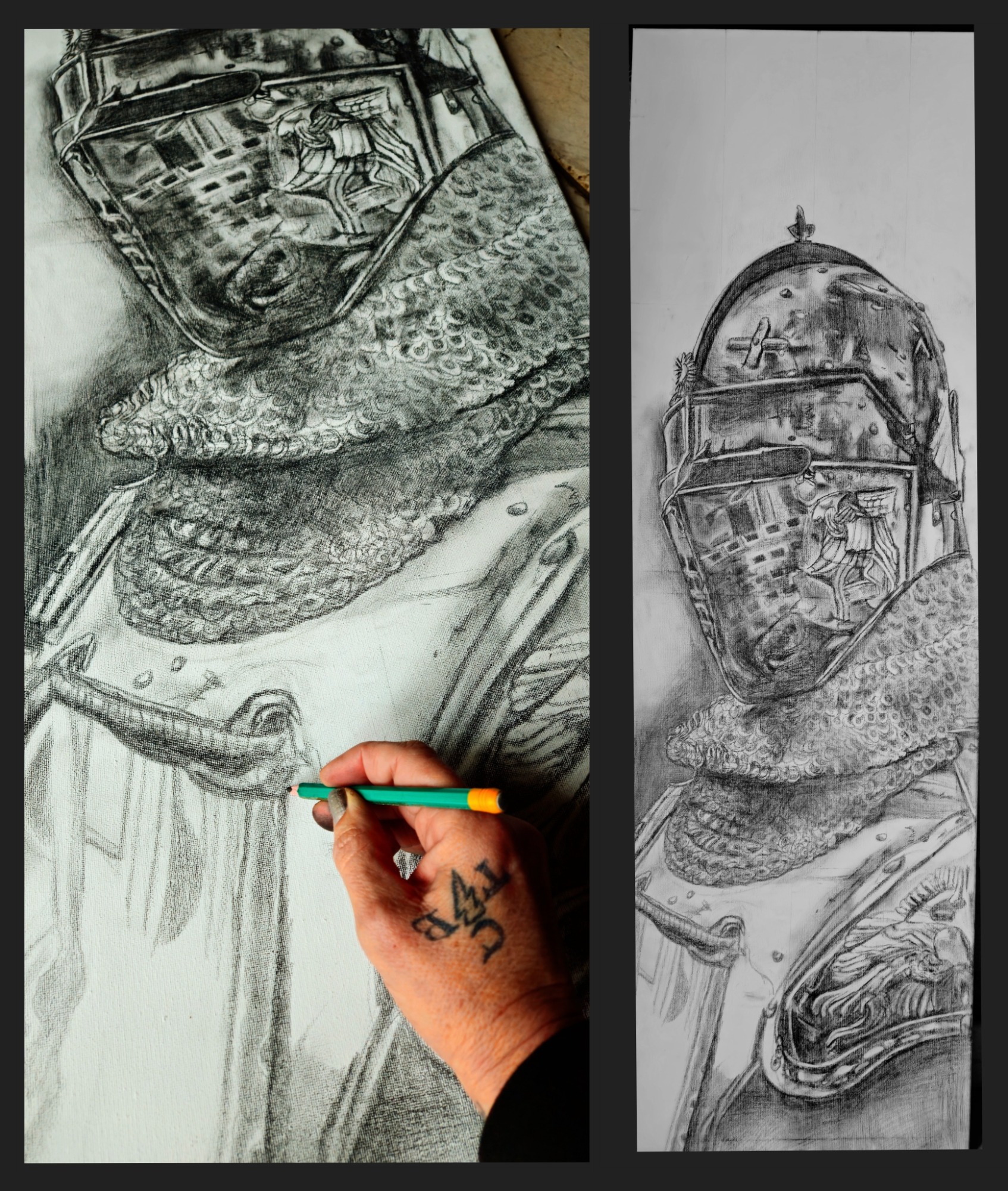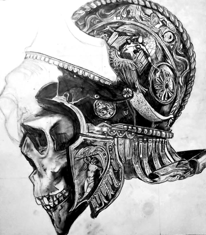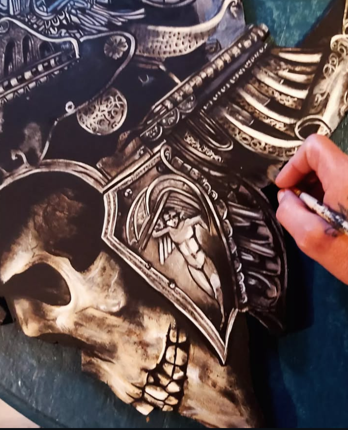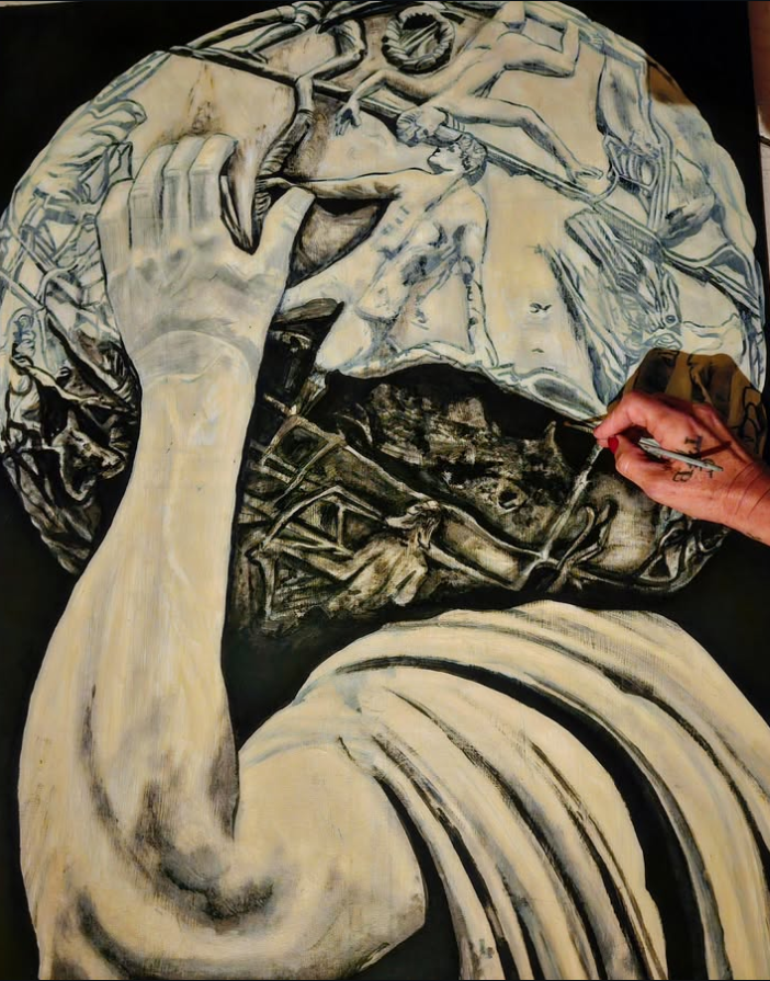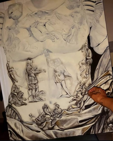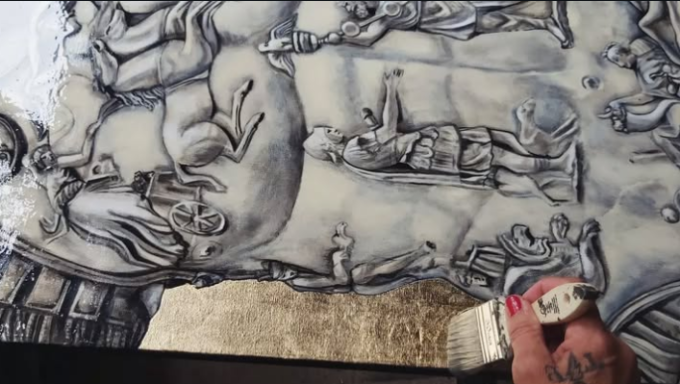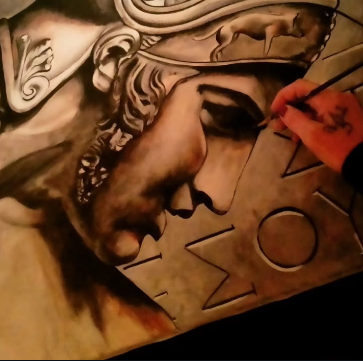 Acrylique et feuilles d'or sur toile 90x70, d’après la statue de Caesar Augustus, le premier empereur romain.